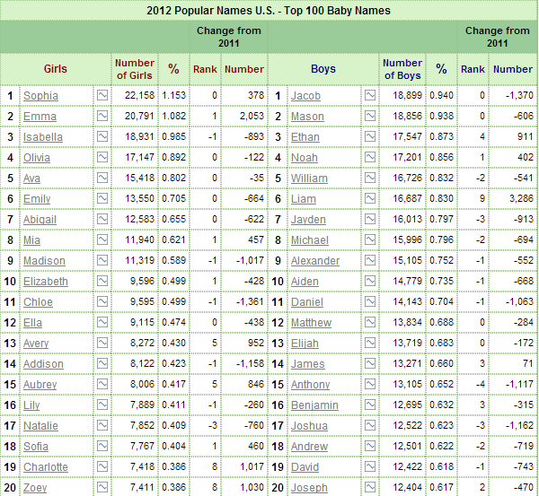To give you a sense of the time, here are the most popular names as of today: