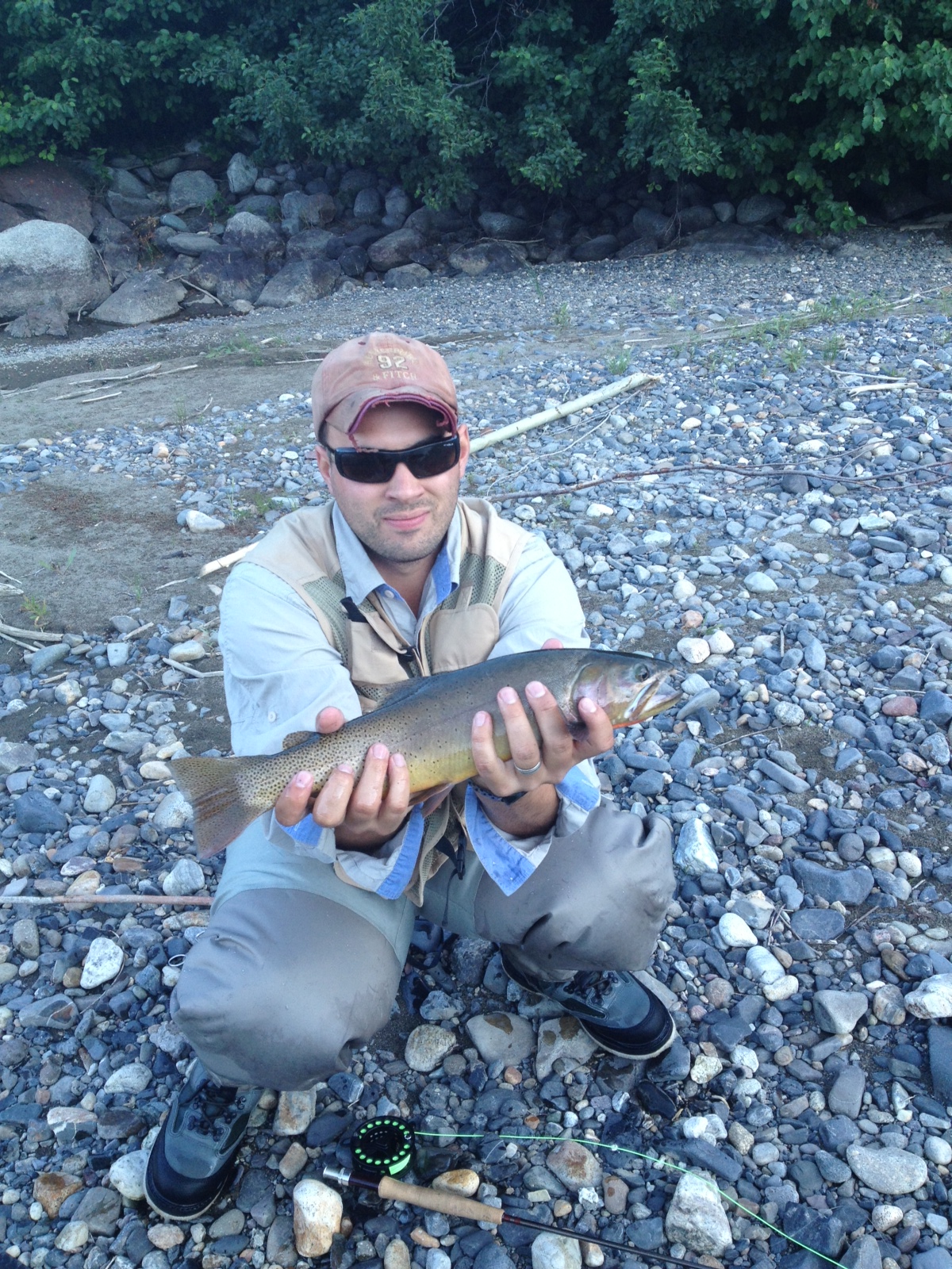 We decided to head back to fish around camp, and the next couple hours were pretty dead. After that the fishing picked up, and while your uncle went for a hike I pulled 4 rainbow trout out of the river just south of the campsite. Overall is was a success. Here is the biggest fish from the trip:
