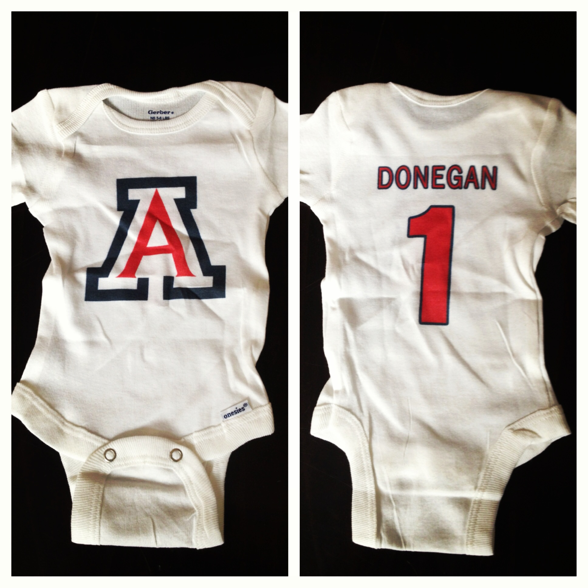 One thing exciting that has happened is that you started receiving (or we started receiving) gifts! My buddies Mike and Aaron each sent something, and, well, they are hoping that they may sway your college decision before you are even born. Here are the pics: