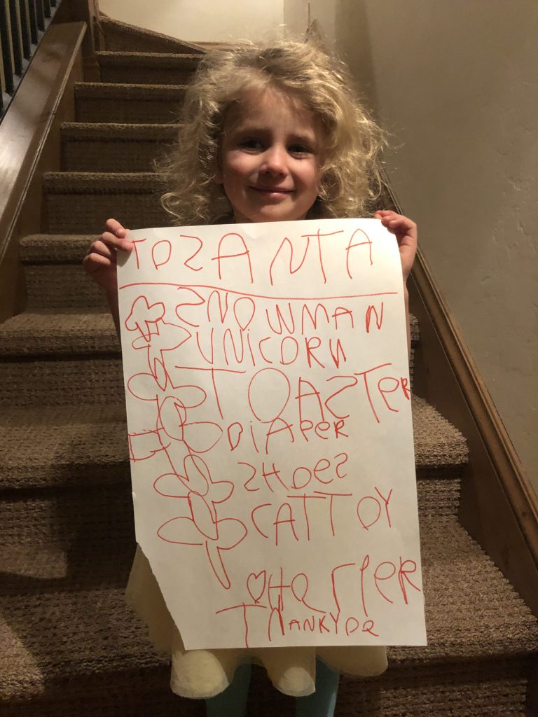 The last six months I have seen more development in you than any other span that size. Everything from social aspects to life application of learnings to openness to new things and experiences. Your art has improved dramatically, and your knowledge of letters and numbers have evolved at a rapid pace. Even the way you play has taken on a much more mature attitude - taking our orders and cooking us play food is a great example of how you are developing workflows and executing against them. I plan to really begin honing your technical skills and seeing if something like coding is something you find interesting.