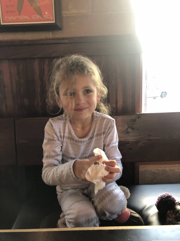 We did a lot of skiing this year. We even went to McCall and you got to ski with Ali and Maci from our street. With them you were even more brave as they had a lot more experience - but you totally hung with them. We skied for a few hours again and you had a blast. We actually went to McCall for your birthday and celebrated it in a cabin there. My Aunt Jane and her wife Karen joined us and we all had an amazing time.