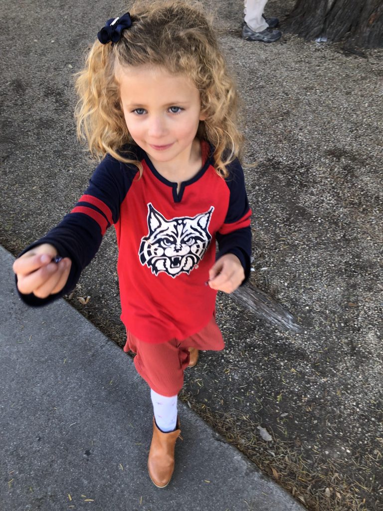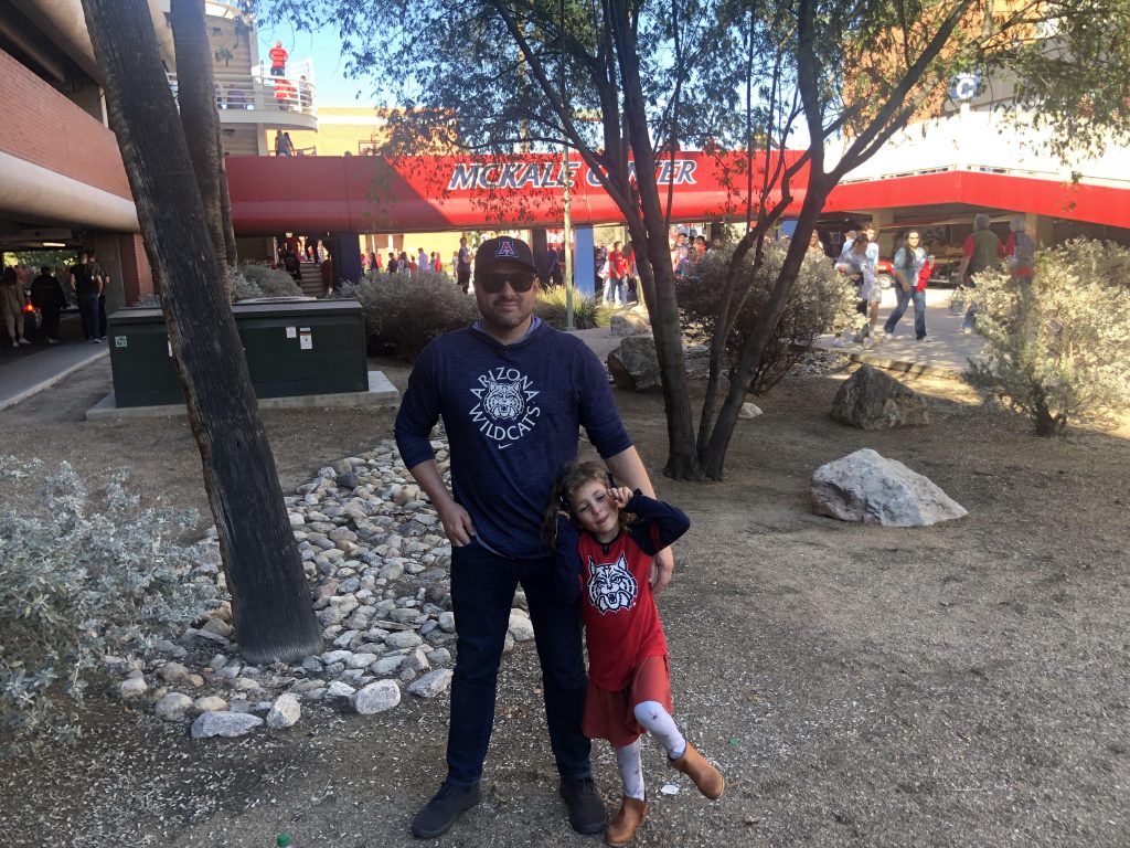 On game-day we went to McKale Center, parked in the Cherry Creek garage, and sat about 20 rows up in the southeast corner. We brought you and Ethan ear protection for the sold out game. You, me, Ethan, mom and Boppy came and we had a great time. Well...Boppy and I had a great time. About halftime you and Ethan were pretty bored and spent the second half on our phones playing games. Boppy and I jumped and yelled and cheered the Cats on to a win.