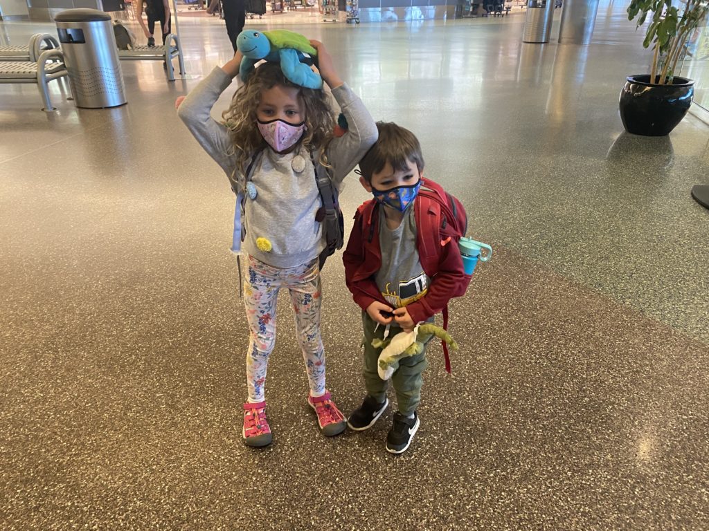 I went to 8 pharmacies. All 8 put me on a list with very little expectations around calling. But, around 3:30 that day, I got a call from Fred Meyer up on Federal Way. They had two doses that were going to go un-used, but they needed to be used by 4pm. I told your mom, we, almost literally, threw you both in the car, and headed up. We got our first dose and were guaranteed our second while there. It gave your mom the solace she needed to get on a plane and fly to Maui (btw, for the last two years nearly it has been required to wear masks on planes, and many other places, which is why you are wearing them in the pictures).