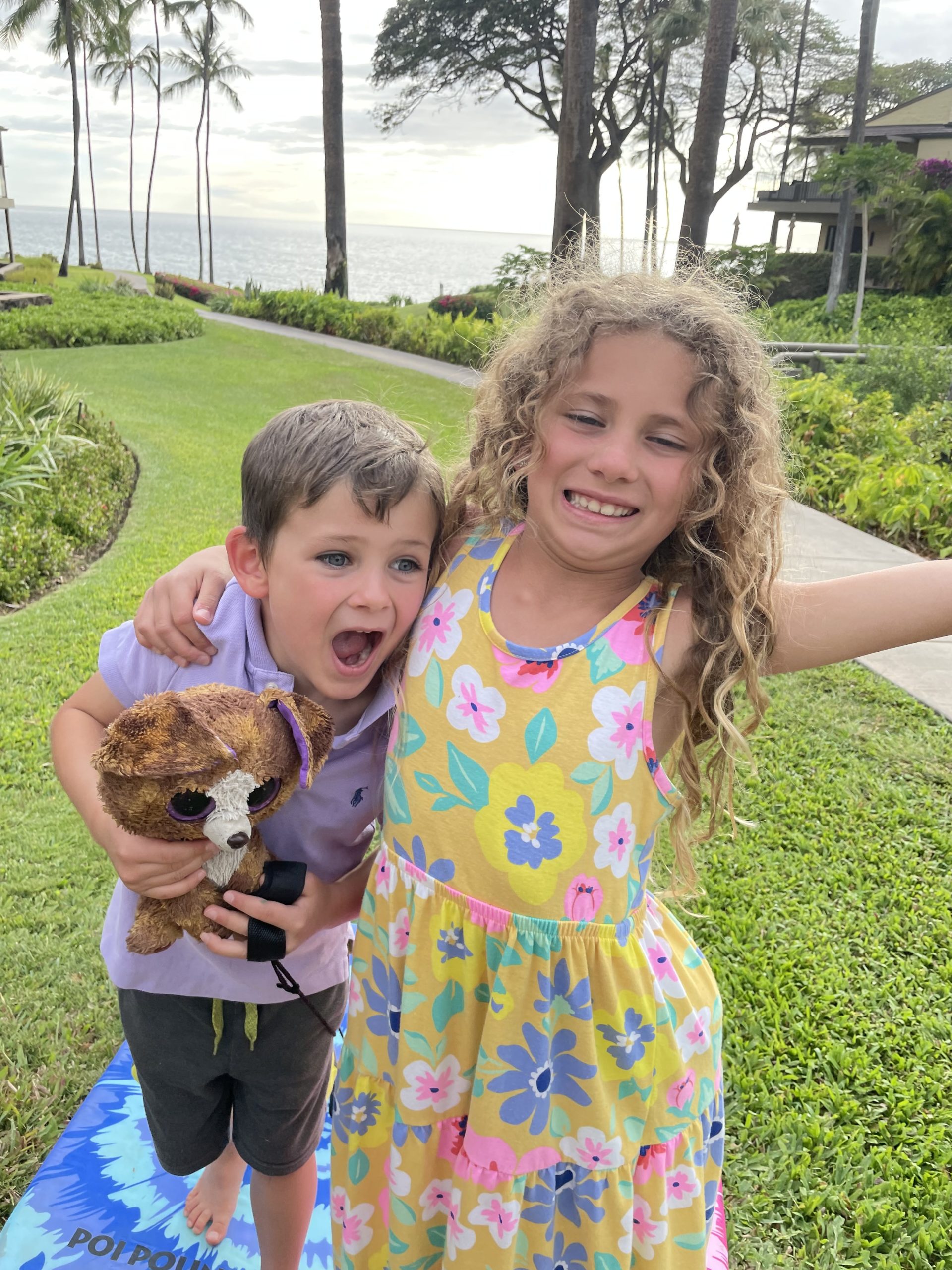 We took another trip to Maui, and the big note this time was that it was the most enjoyable trip we had all been on. This was due to a few factors: you can both ride on planes without assistance (just need tablets/coloring stuff), getting you to sleep is easy nowadays, you can dress and feed yourselves, you can play independent of us and you love to play with each other. But, the biggest change is that you can swim! No longer are we having to worry about you sinking like a stone. We went to the pool everyday, and you jumped right in. We would come in with you, and also sometimes read a book while you swam. As you guys get older these trips become more and more fun.