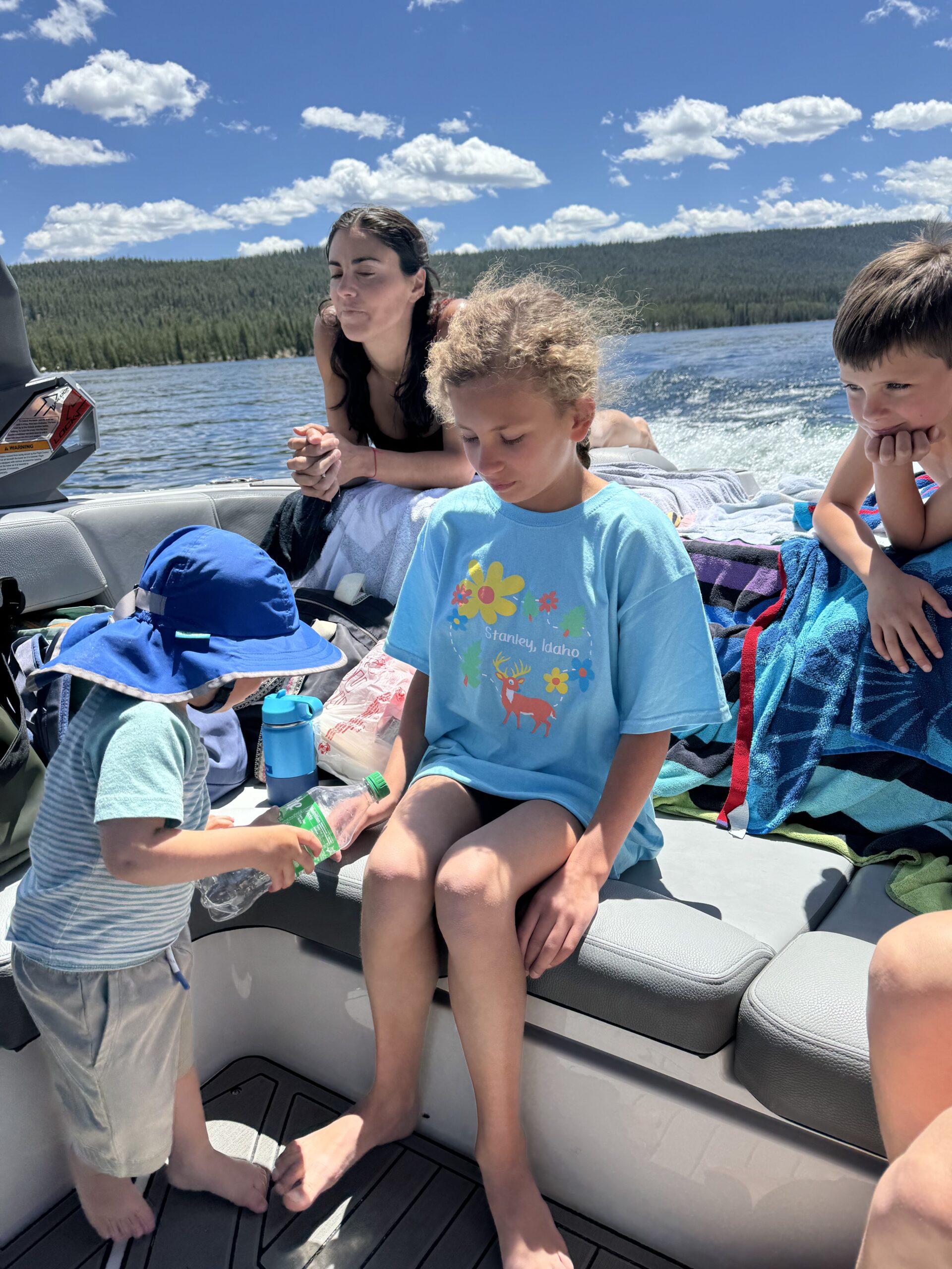 A lot of times we will do little day trips as well. You can see below when we are on Slater and Gina's boat. We also floated a natural lady river on paddle boards with a bunch of other families and friends. Many times you also just want to hang at the campsite and draw or do other art projects. You bug us to go as much as possible, and has really made the investment make sense.